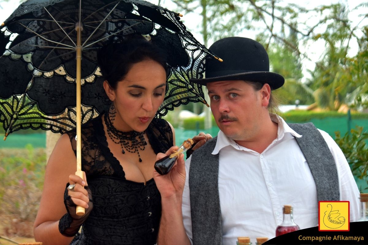 Arpentant les routes d'Amérique, d'Orient et d'Europe, ces Bonimenteurs proposent potions, baumes et onguents... Rien de magique! Que du scientifique!